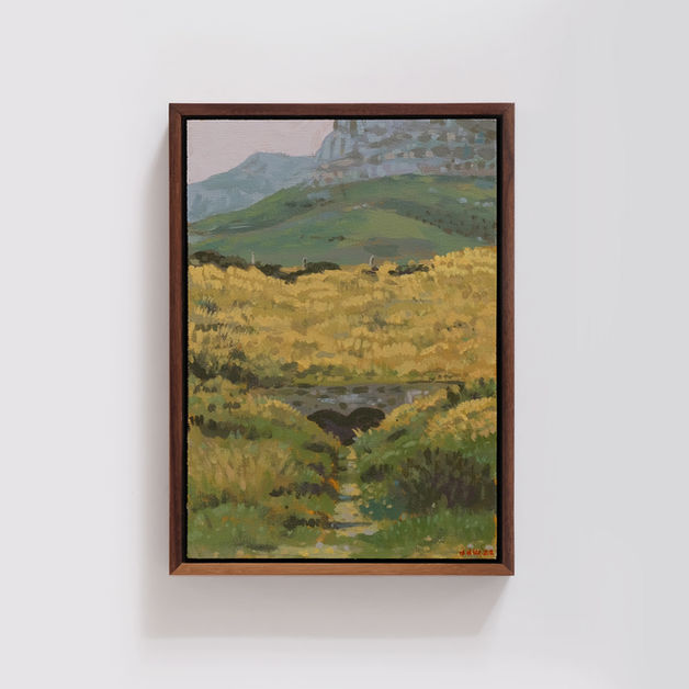 This series coincides with my (rather late) discovery of the traversable paths among the foothills of Table Mountain and surrounds. After the lifting of our nationwide enforcement of lockdown during the pandemic I could feel my physical and mental health declining and I needed to take some steps to remedy that. I would take many photographs and record the environmental changes with every 7-10km walk and quickly used that as inspiration for these paintings. In many ways, it was the beginning of my journey into painting as a discipline and I used alot of this time to think about how to apply my learning.